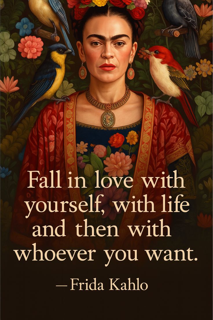 Dor que virou identidade. Sofrimento que virou arte. Frida enfrentou doença, acidente, cirurgias, abandono, preconceito. Cada golpe partia seu corpo — e cada fratura revelava uma parte nova de sua alma. Em vez de esconder a dor, ela pintou. Em vez de suavizar suas cicatrizes, transformou-as em símbolo. Frida não buscava perfeição. Ela buscava verdade.